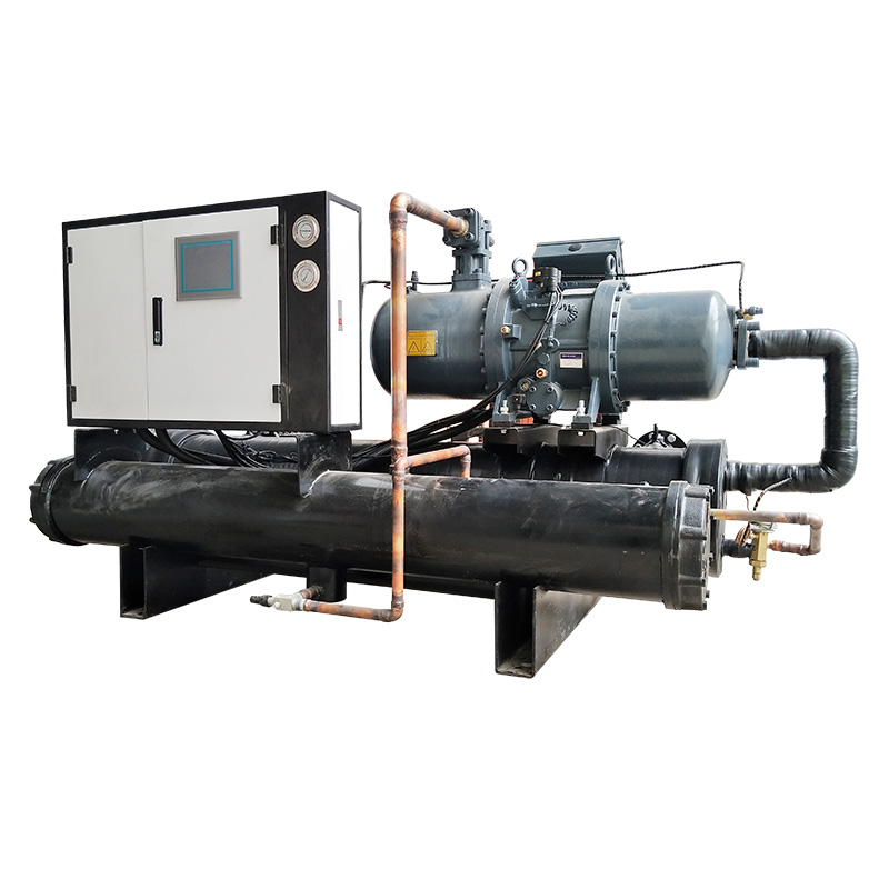 Винтовые чиллеры можно разделить на два типа: винтовые чиллеры с водяным охлаждением и винтовые чиллеры с воздушным охлаждением. Из-за своих ключевых компонентов компрессор имеет винтовой тип и называется винтовым чиллером. Агрегат находится в состоянии выхода газа из испарителя. Хладагент: после адиабатического сжатия компрессором он переходит в состояние высокой температуры и высокого давления.