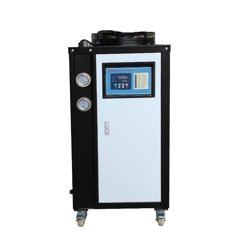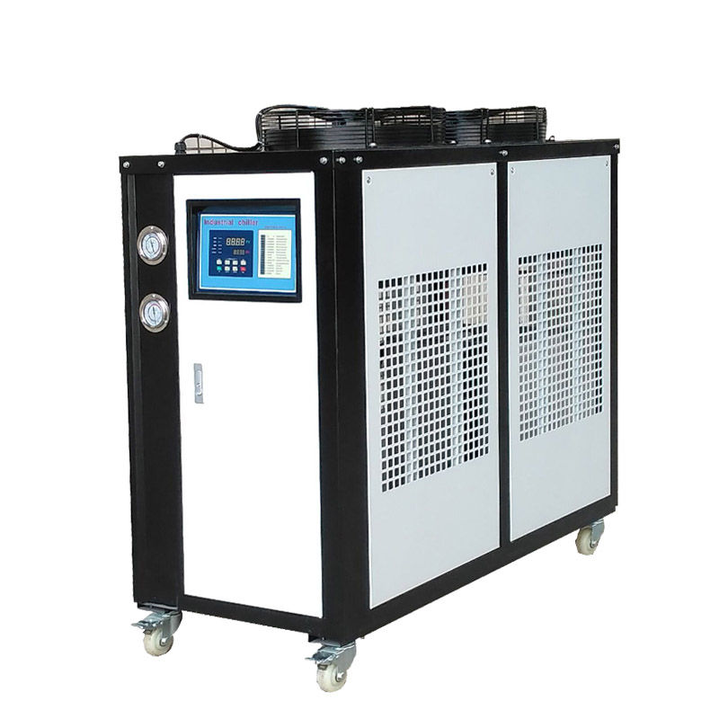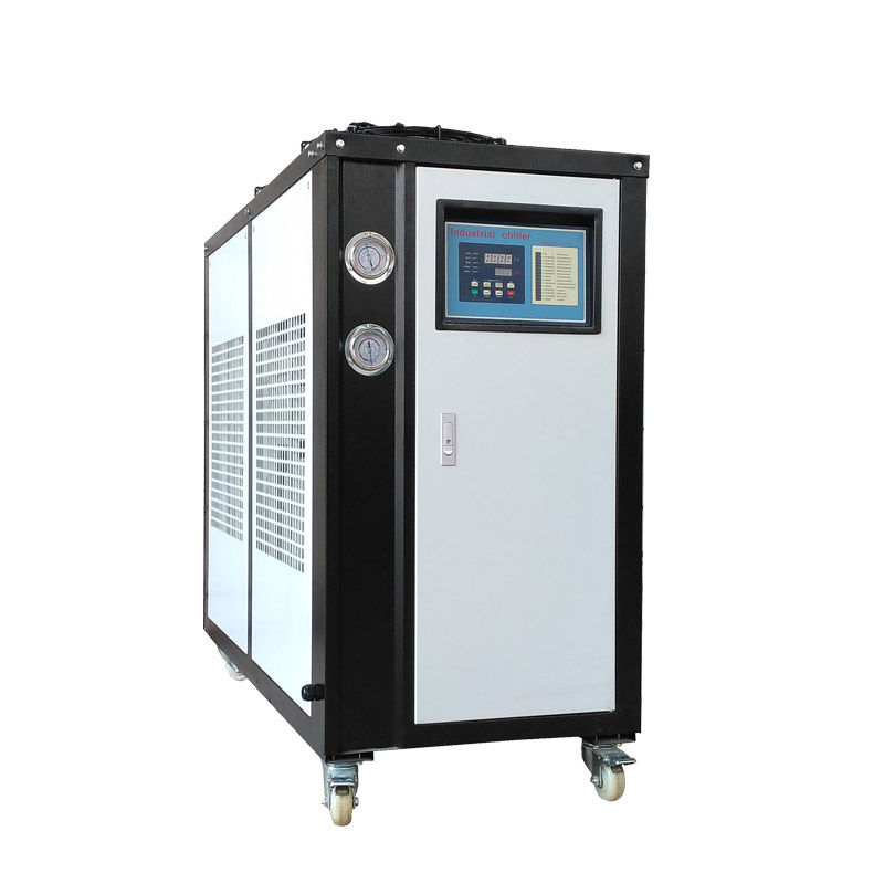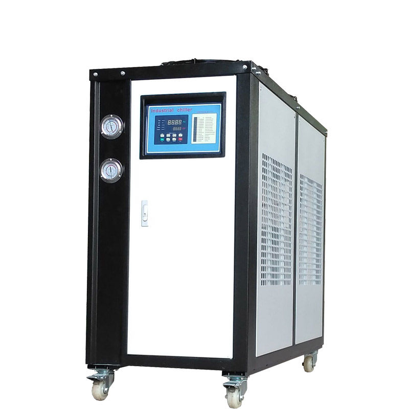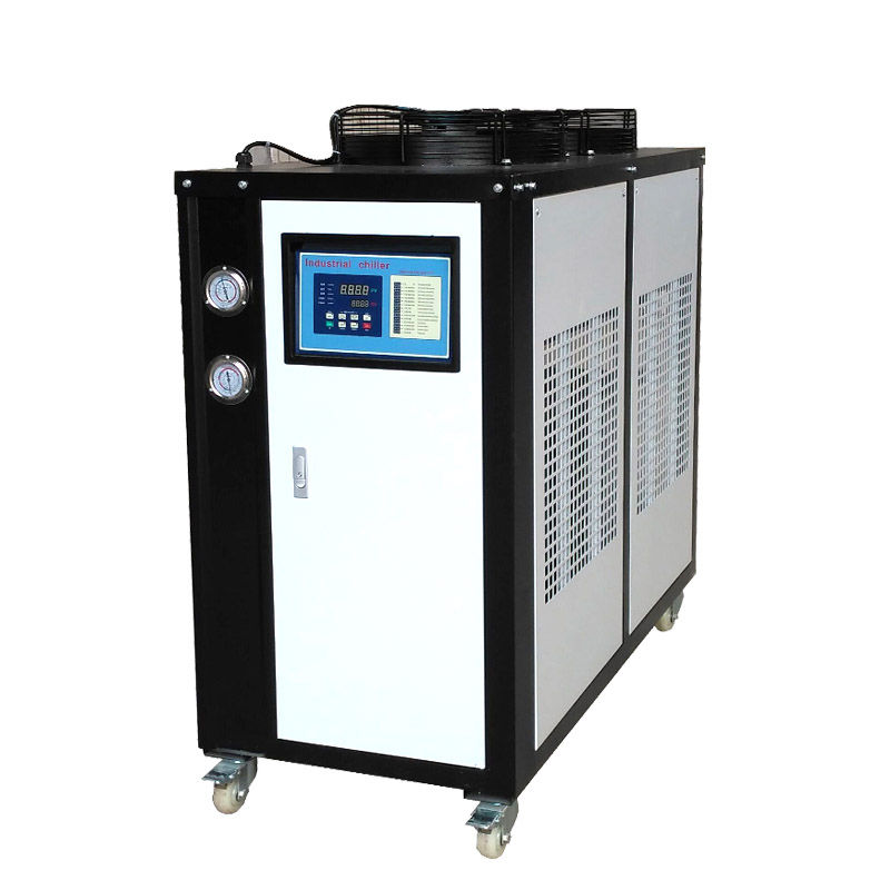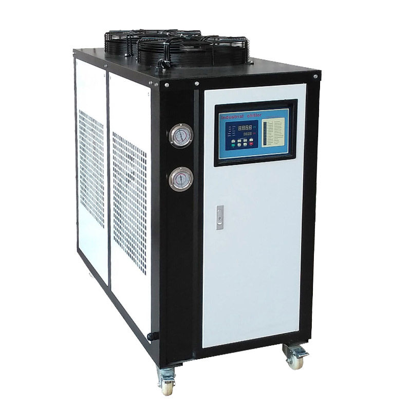 Это чиллер с воздушным охлаждением 3PH-220V-60HZ мощностью 5 л.с. Холодопроизводительность составляет 15 кВт (12900 Ккал/час). Эта модель пользуется большим спросом и широко используется в различных отраслях промышленности: охлаждение термопластавтоматов, охлаждение блистерных машин, охлаждение машин для нанесения вакуумного покрытия и т. д.